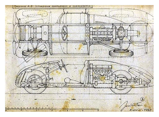 Однако немцы, в 1934 году устроившие "блицкриг" на гоночных трассах Европы, не дали почивать на лаврах и стричь купоны. Открытием стал среднемоторный Auto-Union Type A конструкции Фердинанда Порше. Попытки создать гоночные автомобили по такой схеме были и раньше - например Benz RH 2.0 Prototype '1922, но "Ауто-Юнионы" громили всех и конкуренцию им могли составить только Mercedes. Соперники заволновались. Сперва "Альфовцы" построили двухмоторный Alfa Romeo 16C Bimotore/ Машина получилась тяжелой, прожорливой и плохо управляемой. Тогда был сделан "ход конем": официально на заводе сосредоточились на переднемоторной 8С, но параллельно велась работа над среднемоторным прототипом. А поскольку уверенности в успехе не было (у немцев тоже "поехал" только Auto-Union Type C, да и тот отличался крайней нервностью в управлении и многие гонщики его просто боялись) - работы производились в небольшой мастерской братьев Джино и Оскара Янковичей в городке Фиуме (ныне Риека) на побережье современной Хорватии. В случае провала можно было бы в этом случае открестится от машины - мол "Не виноватая я - он сам пришел!" Почему Янковичи в Хорватии? Тут, похоже, сыграли свою роль родственные связи Витторию Яно: его родители родом из Австро-Венгрии и его имя - итальянизированное Виктор Янош.