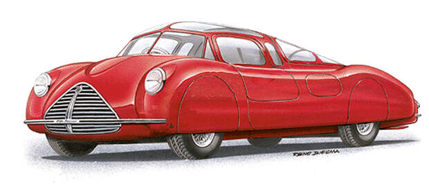 А алая красавица Alfa Romeo type 163 16С '1939/40 в шапке поста - как раз развитие спайдера Янковичей. Мне не удалось выяснить, был-ли построен автомобиль "в металле" или остался на бумаге.