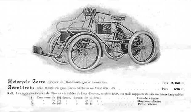 Жил во Франции такой дядька как Жан-Мари Корр, он был заядлым велосипедистом, и постоянно участвовал во всяких веломарафонах, покрутить педали на расстояние в 1000-1200км было для него нормальным явлением. В 1895 году, когда ему стукнуло 31 он решил сам производить велосипеды, новинкой стало появление велика с рамой из алюминиевых сплавов. Но уже через 3 года Корр увлекавшийся механикой строит автомобиль с передним расположением мотора, который кстати был куплен у "Де Дион", получившуюся конструкцию Корр продаёт фирме Де Дион.