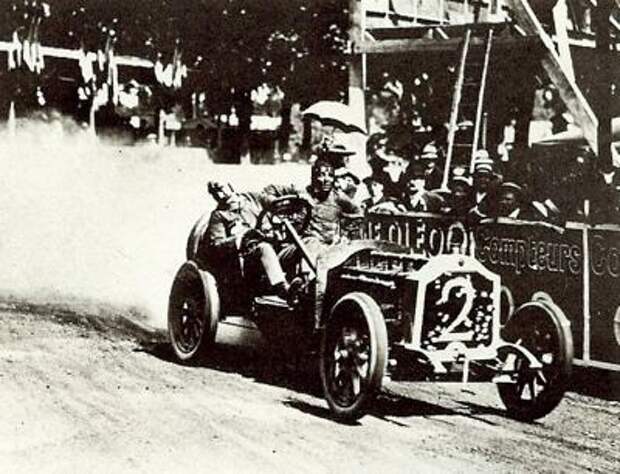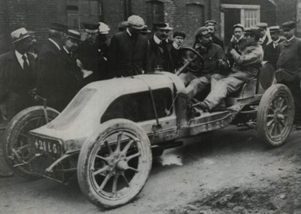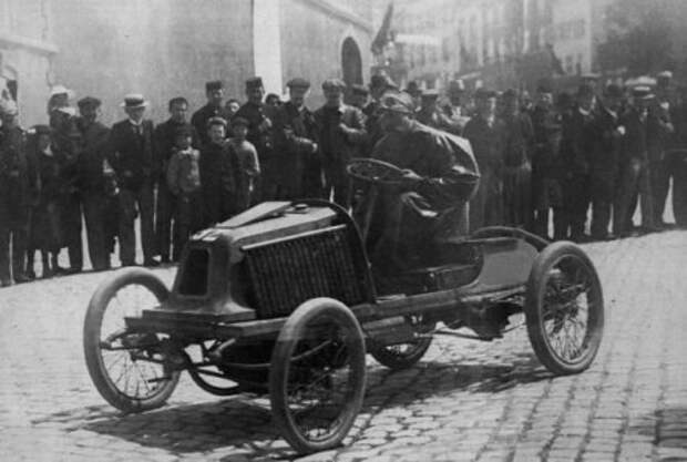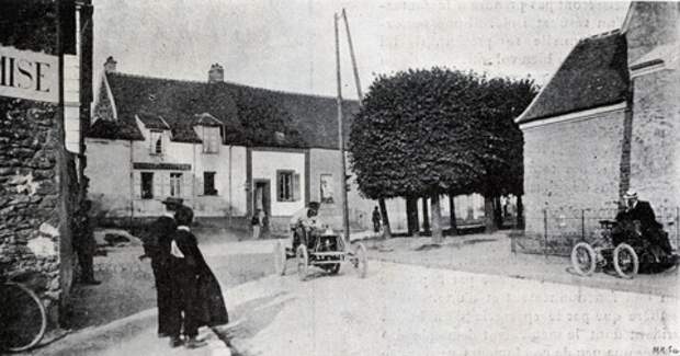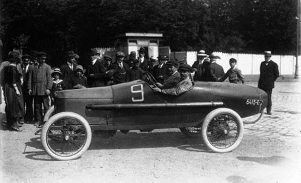 Жан-Мари Корр на Corre Type E 3/6CV на гонках Париж-Берлин. Справа в углу какой-то мужик на квадроцикле
