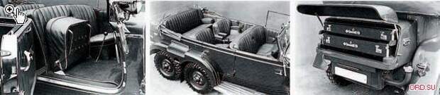 Приходилось также учитывать, что машины вождей Рейха будут оснащаться специальными многосекционными пулестойкими шинами, скоростные возможности которых еще ниже. А поскольку полная масса автомобиля (в особенности оснащенного броней) могла достигать 4,5 тонны, водителю этого «легкового» тяжеловеса приходилось быть весьма осмотрительным при выборе дороги – на грунтах с низкой несущей способностью вездеход сразу же зарывался перетяжеленным задом. Сохранились кадры, на которых вездеход пытаются вытолкать из песчаной ловушки, а рядом прогуливается сам Адольф Гитлер. Причем, судя по весьма довольному лицу фюрера, эта ситуация его даже забавляет...