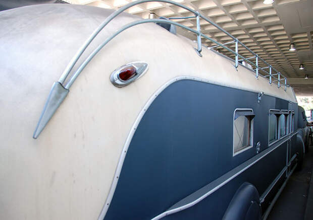 четырёхтонный прицеп, перманентно присобаченный к тягачу, был выпущен флоридской формой Curtiss Aerocar(иногда упоминается как Curtiss Aerocar Land Yacht). найти про неё особо ничего не удалось, кроме того, что она, вероятно, была основана одним из пионеров авиации и конкурентом братьев Райт Гленном Кёртиссом (Glenn Hammond Curtiss).