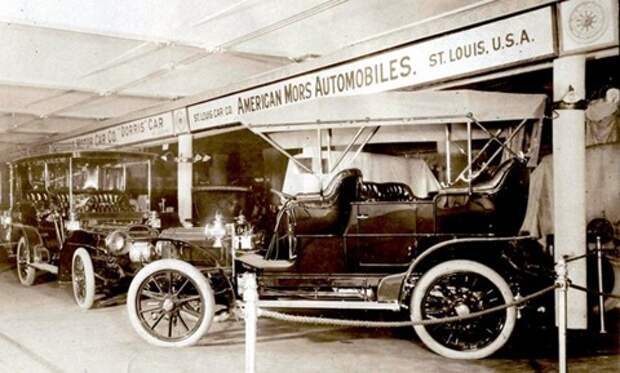 Стенд фирмы SLCC выпускающей American Mors на Автомобильной выставке 1907 года в Чикаго.