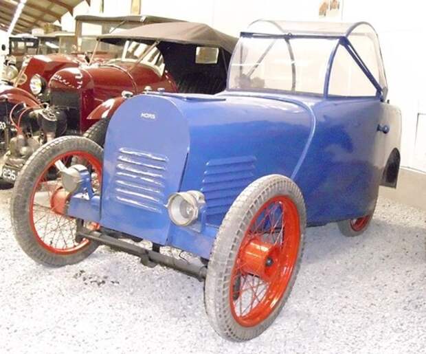 Скорее всего это и есть электромобиль 1940 года Mord Type D. В некоторых фотогалереях указано, что это электромобиль 1914 года, но я не встретил ни одного упоминания об изготовлении электромобилей в этот период фирмой Mors. Во-вторых, в описании Бурсэна упоминается прозрачный купол двухместного кузова, который явно не мог иметь такую форму остекления в 1914м году.