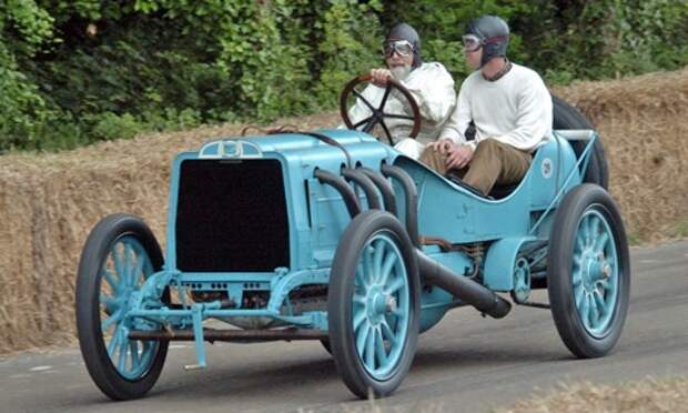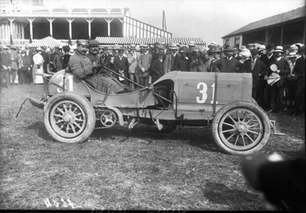 Ландон за рулём 100-сильного гоночного Mors во время Большого Приза 1908 года. Сохранить в Альбом