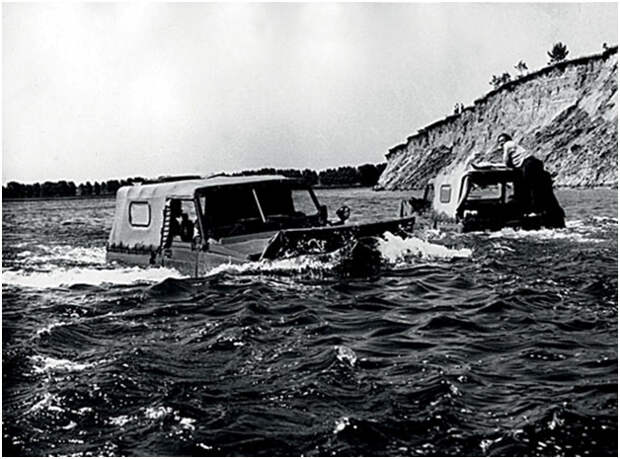 В 1983 году группа конструкторов УАЗа получила правительственные награды за изобретение плавающего автомобиля УАЗ-3907 «Ягуар». Эта модель предназначалась для армии, в частности для пограничников. До сих пор в мире нет аналогов этому автомобилю – его скорость на воде составляет 8-10 км/ч. Кстати на испытаниях автомобили дошли своим ходом до Астрахани и обратно. Вроде бы ничего примечательного, но... Сделали они это по воде!