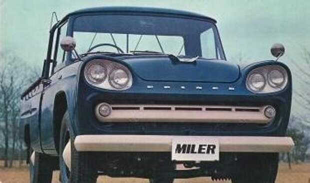 В 1964м году редизайн доходит и до коммерческих автомобилей, пикап Miler получает 4х фарную оптику, теперь все машины бренда (кроме более крупных грузовичков, о которых я не упоминал, а это модели Homer и Clipper) имеют по 4 глаза спереди.