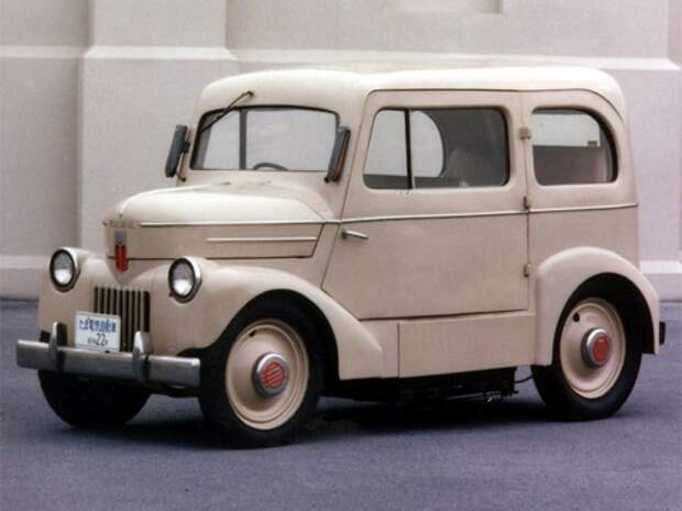 Оставшиеся конструкторы стали работать над проектом электромобиля, дело в том, что горючее было в большом дефиците и выдавали его по карточкам, поэтому и было решено производить тот транспорт, который не требует углеводородов. Первый прототип на арендованных в Токио помещениях был построен в 1946м году. За основу взяли довоенный грузовичок марки Ohta, этот автомобиль назывался Typ EOT-46, аккумуляторы были в грузовом отсеке, а электродвигатель поместили под капот.