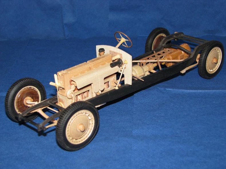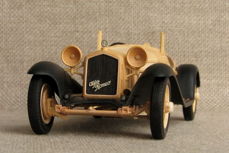 Но дело не только в подвижных элементах — неподвижные тоже поражают своей точностью. Даже маскот-слоник на капоте «Бугатти» вырезан идеально, а буквы, складывающиеся в название марки, выполнены с величайшей степенью точности и наклеены на капот. При изготовлении решетки радиатора «Альфа-Ромео 8С 2300» использовались пластинки из черного дерева толщиной 0,2 мм. Для того чтобы установить их идеально параллельно друг другу, Алексей придумал и сделал специальное приспособление. И еще одно напоследок: каждая свеча зажигания на «Альфа-Ромео» (представьте себе размер) состоит из трех отдельных деталей… Такого вам не продаст ни один магазин деревянных игрушек во всем мире! При всем этом Алексей пожимает плечами и говорит о своей работе очень просто, хотя и не без законной гордости. Он не использует каких-то уникальных технологий, у него нет секретов. Если у вас достаточно мастерства и терпения, вы можете попытаться заняться тем же самым. Вот только на сегодняшний день в мире нет другого моделиста, нашедшего в себе такие же внутренние ресурсы. Хотя не в последних дело.