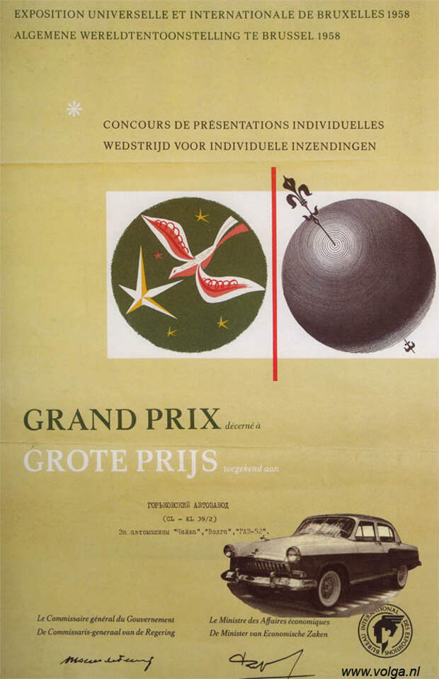 Когда я написал, что ГАЗ-21 "Волга" получил на этой выставке Гран-при, один из читателей ответил, что приз был получен вовсе не за машину, а за весь стенд, "за оформление".