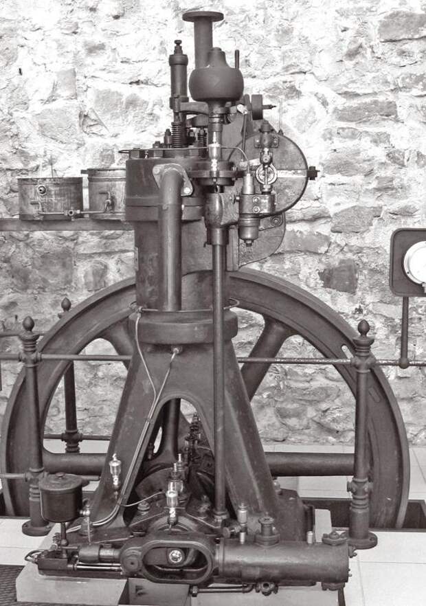 Рудольф Дизель на презентации своего двигателя в 1896 году в окружении ведущих ученых и инженеров Германии Как-то Дизель, неожиданно даже для самого себя, открыл удивительную вещь. В руки ему попалась пневматическая зажигалка для прикуривания сигар. В небольшой стеклянной трубке был заключен прут – фитиль, который используется при высекании огня. С помощью поршня воздух в трубке сжимался, и фитиль начинал накаляться. Можно сказать, что данный механизм запалил также и все сознание изобретателя. Оказывается, все просто: надо хорошенько сжать воздух, который вследствие этого нагреется до нужной температуры, и после этого соединить с топливом, которое и будет воспламеняться. Переехав в Берлин, Дизель сразу же берется за осуществление своей идеи, и в 1893 году получает свой первый патент, которым закрепил за собой право собственности на “рациональный тепловой двигатель”. Также следом он издает книгу, где детально описывает теоретическое обоснование и конструкцию "рационального теплового двигателя". К слову, поначалу Дизель называл изобретенную силовую установку "атмосферным газовым двигателем", однако данное определение не прижилось, превратившись позже просто в фамилию изобретателя. Через некоторое время Рудольф покидает компанию Линде и организовывает собственное предприятие. И в течение следующих трех лет он изготавливает несколько опытных образцов, постепенно совершенствуя их и исправляя недочеты, которые он никак не мог предусмотреть при теоретических исследованиях.