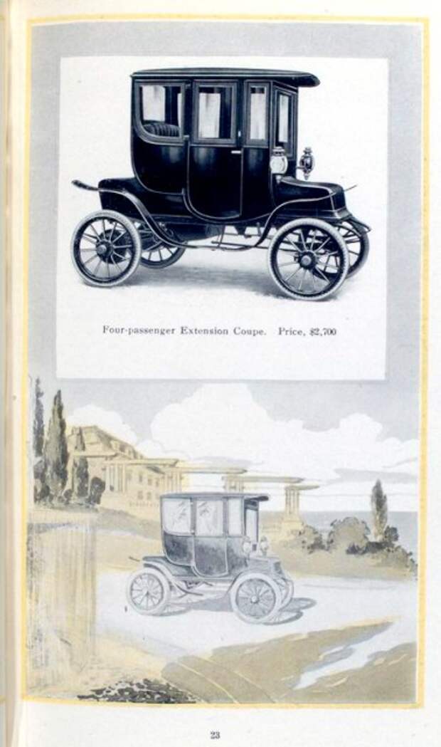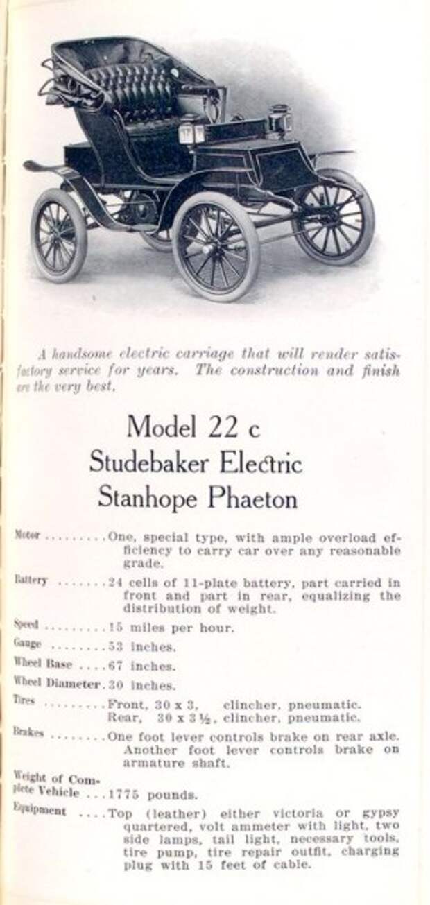 Но в 1890е-1910е годы, когда автомобили с ДВС еще совершенствовали, электрические автомобили с ними успешно конкурировали. Их преимуществом было то, что они быстро заводились, не требуя ручного стартера, а мощеных дорог за городской чертой было не так много, так что длинные поездки все равно редко предпринимались.