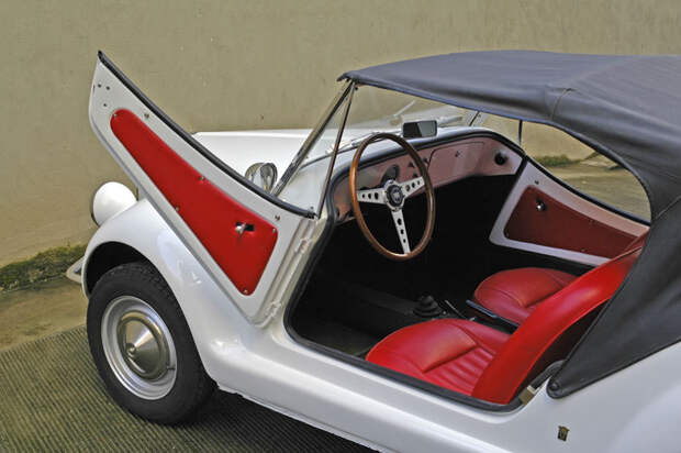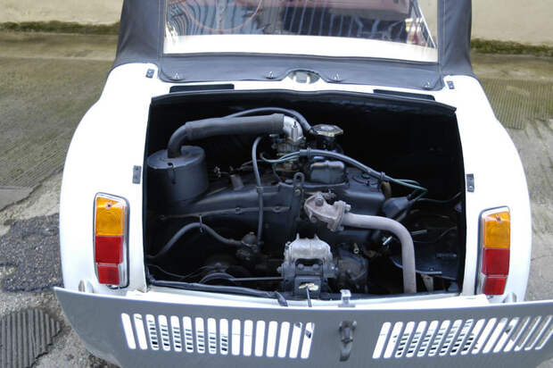 А вот нутро у Gamine было очень плебейское. Собственно Gamine это перелицованный под старину Fiat 500. Шасси бралось целиком. Двигатель от версии 500 Sport. Он был мощней стандартного. Целых 21,5 л.с. В остальном все тоже. Воздушное охлаждение, два цилиндра и рабочий объем в 500 кубов.