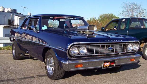 1964 Chevrolet Chevelle Blue Pro-Street стриракерская так сказать, большие катки пришли из драга как я понимаю, выхлоп.