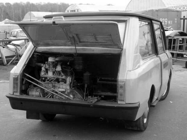 Другой автомобиль – первый в СССР, и один из первых в мире компактвенов – ВНИИТЭ «Макси» на шасси ЗАЗ-965. С технической точки зрения он не представлял каких-то откровений, но с других... Имея такую же длину и базу, что у «горбатого», «Макси» с однообъемным кузовом предоставлял четыре полноценных места и приличный объем багажного отделения, располагавшегося за спинками задних сидений над мотором. Дверей - всего две, зато они были сдвижными, а для облегчения входа на задние сиденья передние были выполнены поворотно-сдвижными. Задняя стойка кузова играла роль воздухазаборника, а также спойлера, направлявшего поток воздуха на заднее стекло для сдувания с него пыли и воды. При массе в 650 кг и 27-сильном моторе «Макси» мог разгоняться до 120 км/ч. Но выпускать «Макси» было некому – ЗАЗ и сам едва справлялся с выпуском «горбатых», денег на модернизацию и расширение производства не было, а оценить преимущества однообъёмного кузова всему миру предстояло лишь спустя три десятка лет.