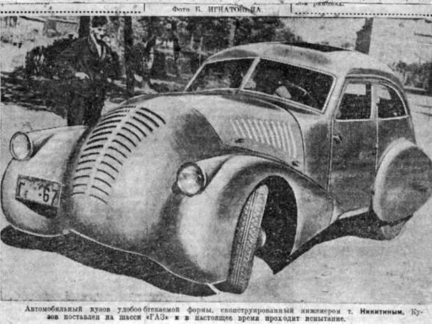Из легковых автомобилей тех лет стоит выделить ГАЗ-А-Аэро конструкции Никитина. Это была попытка создать обтекаемый автомобиль, навеянная экспериментами немецких инженеров. Машина имела кузов необычных форм на деревянном каркасе с закрытыми задними колесами и без выступающих элементов, что помогло снизить коэффициент лобового сопротивления вдвое. В результате, с форсированным с 40 до 48 л. с. 3,3-литровым мотором, автомобиль развивал 106 км/ч (на 16 км/ч больше, чем у ГАЗ-А), разгонялся до 80 км/ч за 36 сек. (- 2 сек.), и расходовал на 20% меньше топлива.