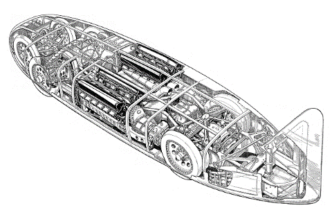 Машина получила два двигателя Rolls Royce V12 объёмом 36.5л каждый, суммарной мощностью в 2350 л/с. Машина, чья масса равнялась 7 тоннам имела 3х оси, с восемью колёсами. Две передние оси были управляемыми, а задняя ведомая, которая и имела спаренные колёса.