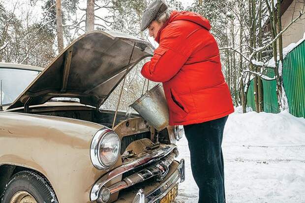 В 1950-е, 1960-е и даже в 1970-е антифриз – большая редкость. Кто-то делал его сам! Иные грели поутру два ведра воды: первое – чтобы пролить насквозь, отогреть и закрыть сливные краники, из второго наполняли систему охлаждения. Если воду на газовой плите согреть как следует, мотор станет чуть теплым еще до пуска.