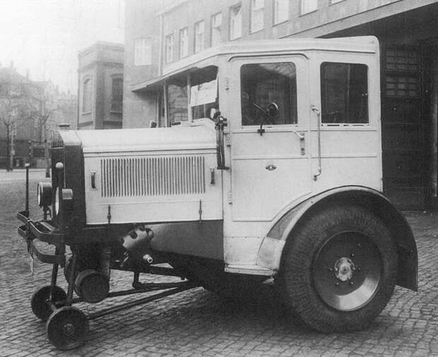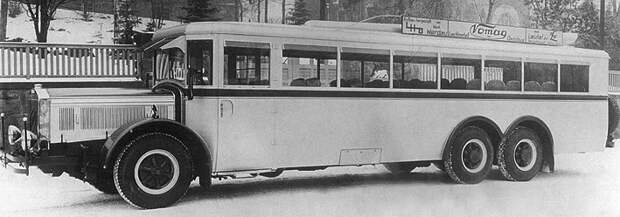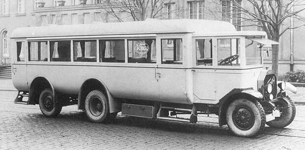 Замечательный автобус на 75 пассажиров. Колеса на передней и задней оси - поворотные. И это 1925 год!