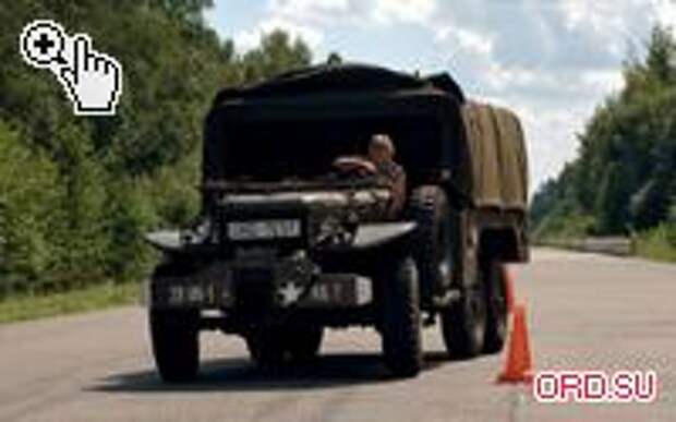 Скоростные проезды по асфальтовой «змейке» со скрипом резины и заезды на максимальную скорость – все это, как вы понимаете, совершенно не для нашего автомобиля. Хотя мы и покатались по динамической дороге, но исключительно ради красивых кадров. В принципе достижимая на данном образце скорость оказалась около 60 км/ч. Что, согласитесь, совсем не мало для трехосного автомобиля шестидесяти пяти лет от роду. В общем, мучить его разгоном до «максималки» мы не стали. При этом в ходе выполнения известного вам упражнения «змейка» машина показала себя на удивление устойчивой и легкой в управлении, не заставляя (ну, практически не заставляя) водителя перенапрягаться при рулении. Одно плохо: закапризничавшая тормозная система то и дело подклинивала левое переднее колесо и тем самым вносила свою подленькую лепту в движение «наземного сухогруза». Впрочем, существенно на управляемости это не отражалось. Тем более что мы в скором времени нашли метод «лечения» этой «болезни»: если после каждой остановки потянуть педаль тормоза руками на себя, то машина начинает ехать гораздо охотнее, появляется должный накат, а картина из просто радужной и вовсе превращается в совсем уже нереальный сгусток положительных эмоций. Более того, после пары десятков подобных «упражнений» (имеется в виду ручное подтягивание педали тормоза) «недуг» полностью пропал – разработалось.