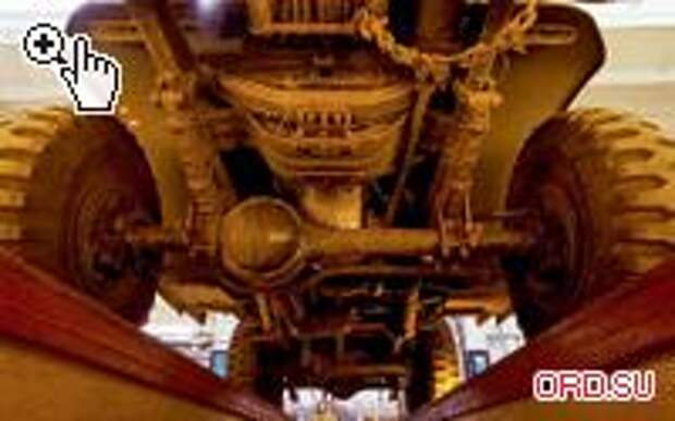 Отдельного упоминания заслуживает необычная конструкция напольной педали акселератора с осью, расположенной как раз на уровне каблука солдатского сапога, что позволяет упираться в нее на ухабах, буквально «расклиниваясь» на сиденье, а дроссель открывать исключительно изменением угла наклона стопы. Картину дополнили полноценные вакуумные стеклоочистители с автоматическим доводчиком и возможностью ручного привода. Когда же мы обнаружили удобные инструментальные ящики под сиденьями и выдвижной деревянный столик перед пассажиром (практически разделочная доска), то впору было начать кричать «браво!» и бурно делиться впечатлениями от увиденного. Мы так бы и поступили, но настало время заезжать в боксы для детального технического осмотра.