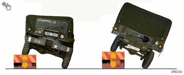 На стенде опрокидывания нас ждал еще один сюрприз: угол отрыва от платформы составил рекордные для этого класса автомобилей 51°38’! Такой показатель прежде всего обусловлен большой массой трансмиссии и широким и низким кузовом. Правда, о традиционном влиянии этого параметра на управляемость сказать трудно, ведь максимальная скорость, заявленная производителем, укладывается в скромные 54 мили в час (87 км/ч), от которых благодаря течению времени и неизбежному износу основных агрегатов «осталось» максимум две трети.