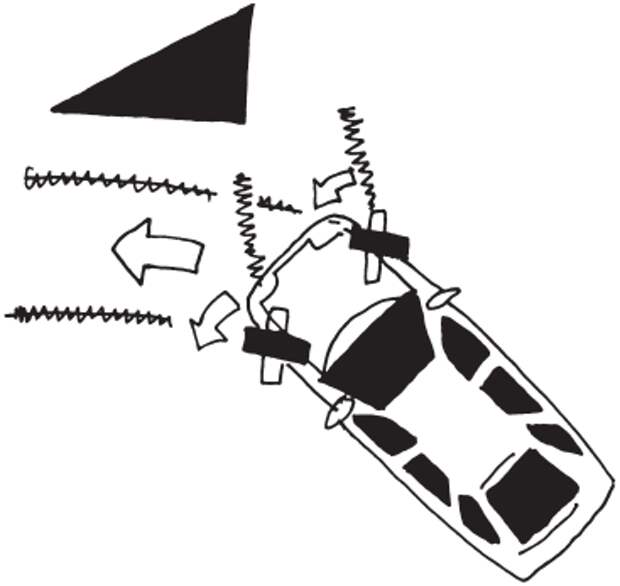 В ограниченном пространстве очень мешает увод кузова автомобиля в сторону при сильно вывернутых колесах. Для того чтобы не помять боковины автомобиля касанием о препятствия, необходимо почувствовать боковое движение, увод корпуса автомобиля в сторону при повороте.
