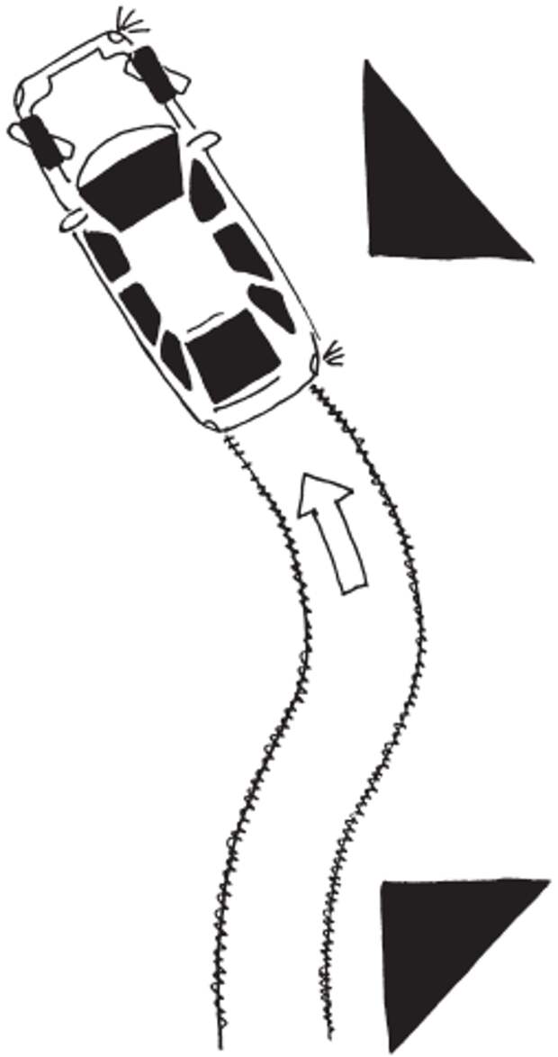 Во-первых, помните о направлении взгляда: машина идет за взглядом водителя. Однажды я наблюдал, как две девушки, только получившие права, выбирали автомобиль. Они по очереди садились за руль, смешно тянули шею в надежде увидеть капот и разочарованные покидали автомобиль. «Капота совсем не видно, как мы будем ездить?» – сокрушались они. Действительно, раньше наши деды и прадеды вели автомобиль, смотря в щель между ободом рулевого колеса и козырьком спидометра, прицеливаясь фигуркой оленя на дорогу перед своей «Волгой». Это вчерашний день! Видеть капот собственного автомобиля водителю совершенно не обязательно. Не надо глядеть прямо перед автомобилем, стараясь нацелить его по центру дороги или между машинами. Автомобиль ведет вперед ваш скользящий взгляд. Или лучше так: ваши руки автоматически, на подсознательном уровне, поворачивают руль в нужном месте и на нужный угол так, чтобы машина следовала за взглядом. Научиться водить машину значит научиться правильно вести свой взгляд, то есть глядеть туда, куда вы хотите ехать.