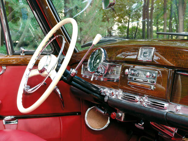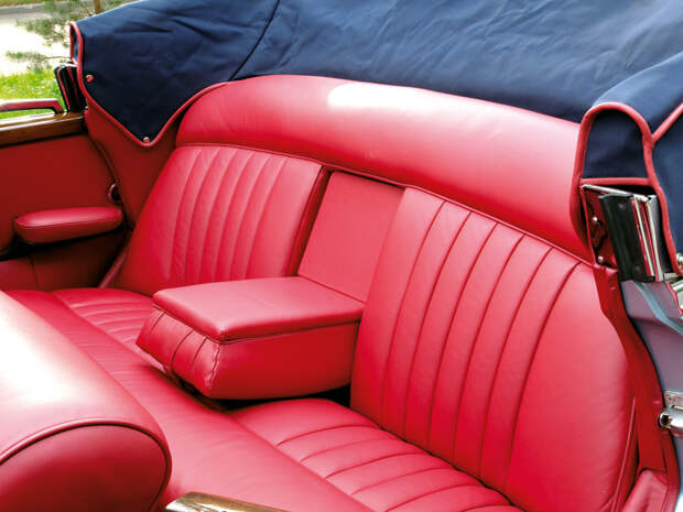 Кожа в кабриолете – скорее необходимость, нежели роскошь. Раньше в представительских автомобилях вообще все было не так, как сегодня. В те годы кожаные сиденья обычно присутствовали только в шоферском отделении (чтобы не протирались из-за того, что водитель часто входит-выходит из машины), а пассажирский диван обтягивался дорогой тканью. Исключения составляли варианты с открытым кузовом, которые, как правило, получали кожаную обивку на оба ряда кресел. Но такое решение диктовалось исключительно практичностью, а не классовым разделением: просто чистить ткань от дорожной пыли и грязи намного тяжелее, чем кожу.