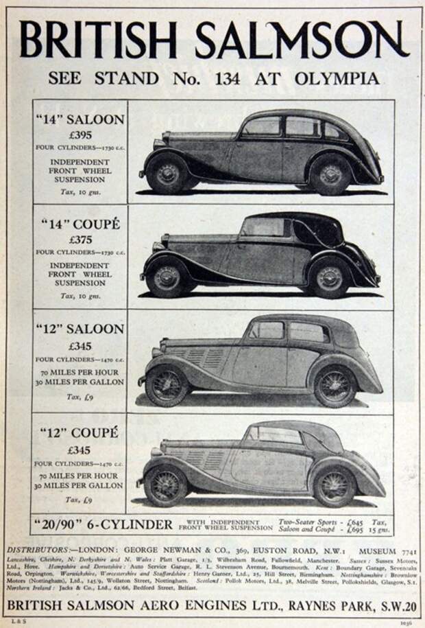 реклама автомобилей марки British Salmson