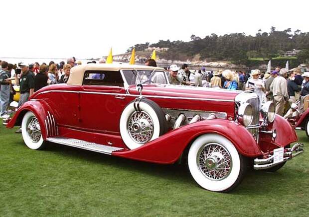 Для чего ходовой части машины был необходим столь солидный запас прочности, стало ясно спустя почти пять лет после ее дебюта. С 1932 года часть автомобилей Duesenberg покидала завод-изготовитель в дооборудованном виде, — с центробежным компрессор-нагнетателем в системе питания двигателя, который поднимал и так уже достаточно высокую его отдачу до величин совсем уж заоблачных, до 320 л. с. Соответственно улучшились и динамические характеристики: если с обычным мотором средний Duesenberg давал порядка 187 км/ч, то с «компрессорным» легко разгонялся до двухсот десяти. Каждый экземпляр шасси прямо со сборочной линии уходил на испытательную трассу, — в качестве которой использовался находившийся по соседству с заводом знаменитый Индианаполисский скоростной трек, место проведения знаменитых 500-мильных гонок, — и накручивал по ней свою индивидуальную «индианаполисскую пятисотку»: таким образом изготовители убеждались в полной надежности агрегатов ходовой части. И лишь после такой вот обкатки машина могла получить кузов. Кузова автомобилей Duesenberg — это отдельная история. На заводе у братьев Дюзенберг кузовного участка отродясь не было: они поставляли свои автомобили исключительно в виде шасси, — а выбрать себе желаемый тип кузова и специализированное ателье, которому можно было вверить его изготовление, предоставляли клиенту. Пока на производстве стояла серия «А», кузовами обычно занимались такие второплановые предприятия, как Rubay, Millespaw & Irish или в крайнем случае Springfield; однако после дебюта в 1928 году описываемой здесь машины новой серии, получившей буквенное обозначение «J», список мастерских и ателье, бравшихся за «одевание» ее великолепного шасси, стал напоминать справочник типа «Кто есть кто в американском кузовостроении». Рука отсохнет перечислять всех мастеров кузовного дела, когда-либо работавших с шасси модели «J»: Brunn и Murphy, Dietrich и Derham, Murray и Judkins, Willoughby и Le-Baron, Rollston и Rollson, Bohman & Schwartz и Hibbard & Darrin, — словом, все кузовостроители, кто чего-нибудь да стоил в Америке двадцатых годов, с радостью участвовали в увлекательнейшем процессе снабжения автомобилей Duesenberg кузовами. Пожалуй, легче будет перечислить тех, кто в этом деле не участвовал вовсе: Fleetwood, — подпавший под влияние General Motors да так там и оставшийся; Brewster, из-за своих крайне радикальных взглядов на стайлинг автомобилей высшего класса (радиатор «сердечком», крылья вразлет аж от середины пассажирского салона и так далее); Holbrook — напротив, из-за чрезмерного и даже скорее воинствующего консерватизма; Biddle & Smart, как фирма «дешевая» и потому непрестижная; да упомянутый выше Springfield, связанный с некоторых пор контрактом с американским филиальным предприятием фирмы Rolls-Royce... Вот, пожалуй, что и все «неохваченные». Не желали отставать и крупные европейские кузовостроительные дома, — французские, бельгийские, швейцарские. Не приходится удивляться, что двух совершенно одинаковых автомобилей Duesenberg не найдешь днем с огнем. Разве что две модели на укороченном шасси, изготовленные в 1935 году для голливудских киноактеров Гэри Купера и Кларка Гэйбла, на первый взгляд могут показаться однотипными, но это только потому, что Гэйбл специально попросил сделать ему машину точь-в-точь как у Купера, чтобы тот не зазнавался. К этому времени Э. Л. Корд уже настоял на том, чтобы в составе его «империи» было собств