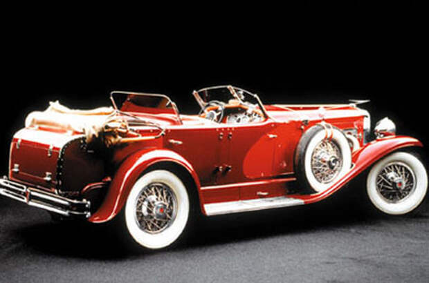| DUESENBERG Обычно техническое задание на проектирование автомобиля — это развернутый многостраничный документ, где все наиподробнейшим образом расписано: чего от будущего автомобиля хотят и чего от него ждут, к какой типажной группе он будет относиться и какие из выпускаемых серийно агрегатов будет в своей конструкции иметь, каков его предполагаемый эксплуатационный срок и на какую, собственно говоря, покупательскую группу он ориентирован. .. Короче говоря, талмуд, — ежели вообще не многотомник. И к нему еще расчетная часть, — такая же объемистая, но со всяческой цифирью: прочностные характеристики шасси, динамические параметры, габаритные и иные основные размеры, плюс экономический раздел — затраты, рентабельность, окупаемость и все такое прочее. Но американским конструкторам и фабрикантам братьям Дюзенберг их новый шеф Эрретт Л. Корд, приобретший их небольшую фирму по производству скоростных автомобилей высшего класса в 1928 году, техническое задание выдал не на бумаге, а устно — и лапидарно: «Я прошу вас сделать лучший в мире автомобиль, — и по качеству, и по ходовым характеристикам. Самый лучший в мире. Чего бы это ни стоило: расходы, стоимость — это все пусть вас не смущает». Братья Дюзенберг, Фридрих и Август, были в автомобилестроении далеко не новичками. Фирма их, Duesenberg Motors, вполне успешно действовала в Индианаполисе вот уже седьмой год, а до ухода в автомобилестроение долгое время были они двигателистами, строили моторы и с двумя цилиндрами, и с четырьмя, и с шестью, и с восемью, и с двенадцатью, и даже с шестнадцатью, для авиации и для плавсостава, для тракторов и гоночных машин... Словом, всякие виды видывали на своем веку эти два выходца из немецкой колонии в американском штате Айова. Но такой смачный карт-бланш выпал на их долю впервые. С одной стороны, лестно, — сделать «лучшую машину в мире» кому попало не закажут; с другой стороны, работать безо всяких ограничений какого бы то ни было свойства — это же воплощенная мечта любого конструктора! А в-третьих, заказчик тоже ничего себе: Эрретт Лоббен Корд, собственной персоной, ни больше и ни меньше... Под конец двадцатых годов не было, наверное, в американском автомобилестроении личности популярнее, чем Корд. Этот блистательный бизнесмен тунгусским метеоритом ворвался в середине десятилетия на запруженную средними, малыми и попросту мелкими производителями автомобильную сцену Штатов, рывком поднял с колен загибающееся от отсутствия спроса бывшее предприятие отца и сына Экхартов в городе Оберн (штат Индиана), собрал вокруг себя лучших специалистов из числа тех, что еще не успели прибрать к рукам супергиганты GM и Ford, — и, встав во главе обновленной компании Auburn, повел решительное наступление на внутренний рынок. Очень скоро под его контролем оказался целый ряд машиностроительных предприятий в окрестностях Оберна, включая два кузовных завода и ту самую компанию Lycoming, у которой ему совсем недавно приходилось закупать двигатели для машин Auburn. «Империя Корда» росла и ширилась буквально на глазах; номенклатура моделей, предлагаемых под маркой Auburn, выросла почти вдвое, затем было сообщено о намеченном на 1929 год дебюте автомобиля под новой маркой Cord... и вот теперь вплотную встал вопрос о модели высшего класса, способной достойно увенчать собою производственную программу нарожд