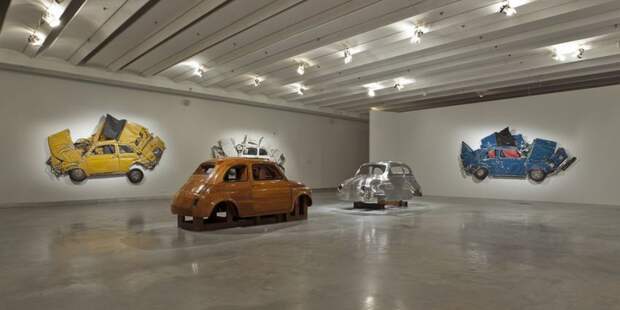 Израильский художник и дизайнер Рон Арад (Ron Arad) ради своего проекта расплющил шесть автомобилей Fiat 500s при помощи промышленного пресса на одной из верфей в городе Гронинген, что в Нидерландах.