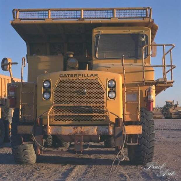 Компания "Катерпиллар" была создана из двух небольших механических мастерских "Холт" (Holt) и "Бэст" (Best), основанных в 1869 году и выпускавших с 1890-х паровые колесные тракторы. Первый в Америке гусеничный трактор Бенджамин Холт (Benjamin Holt) построил в 1904 году, а Дэниэл Бэст (Daniel Best) создал аналогичную машину спустя 9 лет. В результате их объединения в мае 1925 года и возникла компания "Катерпиллар", выбравшая в качестве основного направления выпуск гусеничной техники. Первые колесные машины она изготовила в 1931 г., начав производство авто-грейдеров, за которыми через 10 лет последовали колесные тракторы. Первыми изделиями, относившимися к автомобильной технике, стали в 1951 году одноосные тягачи для скреперов, а в 1962 начался выпуск автомобильных дизелей с турбонаддувом и промежуточным охлаждением воздуха. В 1963 году на новом заводе в Декатуре "Катерпиллар" собрал свой первый карьерный самосвал модели "769В" грузоподъемностью 32 тонны с рядным 6-ти цилиндровым двигателем (14,6 л., 415 л.с.), 3-х ступенчатой полуавтоматической коробкой передач, многодисковыми колесными тормозами в масляной ванне, задним мостом с полностью разгруженными полуосями и гидропневматической подвеской. Через несколько лет его развитием стали модели "773" и "777" с дизелями V8 (600 л.с.) и V12 (870 л.с.) грузоподъемностью 45,5 и 77 тонн соответственно. На их базе предлагали седельные тягачи "772" и "776" для полуприцепов-углевозов грузоподъемностью 100 и 150 тонн с донной разгрузкой. В поисках своего пути в этом направлении специалисты "Катерпиллара" в 1966 создали 90-тонный 3-х осный самосвал "783" с двумя управляемыми мостами, а затем построили уникальный 4-х осный 210-ти тонный углевоз с двигателем мощностью 1000 "лошадей". Оба имели электрическую трансмиссию, но с тех пор фирма больше никогда ее не использовала. Более того, увлекшись гусеничными машинами, на "Катерпилларе" надолго забыли об автомобилях-самосвалах, только в начале 80-х гг. появилась первая модификация "773В" с дизелем V12 (650 л.с.) с турбонаддувом и собственной автоматической 7-ми ступенчатой коробкой передач с блокируемым гидротрансформатором. В 1984 году "Катерпиллар" представил модель "785" грузоподъемностью 118-136 тонн с новым дизелем V12 (51,8 л., 1200 л.с.), 6-ти ступенчатой автоматической коробкой и кузовами емкостью 57-78 м3. Модернизировав в 90-е годы все базовые машины, компания создала широкую гамму самосвалов с механической трансмиссией: модели "769С", "771С", "773В", "775В", "777С", "785В", "789В" и "793В" грузоподъемностью - от 45 - до 240 тонн и полной массой до 374 тонн с двигателями собственного производства мощностью - от 450 - до 2057 "лошадок". Самые тяжелые машины, оснащенные комплексной электронной системой управления и диагностики, могли развивать скорость 53-56 км/ч. В 1999 "Катерпиллар" представил самосвал "797" грузоподъемностью 326 тонн и полной массой 558 тонн с габаритной высотой 9 метров, который стал крупнейшим в мире 2-х осным автомобилем с механической трансмиссией. На нем установлены двигатель "Катерпиллар-35246" V24 (103,5 литра, 3400 л.с.) с турбонаддувом, весящий 9 тонн, автоматическая 7-ми ступенчатая коробка передач, дисковые тормоза в масляной ванне, шины размером 55/80R63 и кузов емкостью 220 м3. С 1975 года в СССР и Россию было поставлено несколько тысяч машин марки "Катерпиллар", в основном гусеничные бульдозеры и трубоукладчики. |